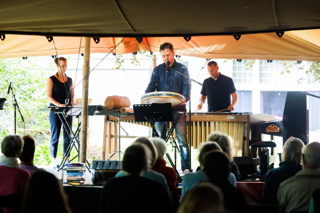 22 juni gaven we samen met dichter Sytse Jansma een voorproefje van onze concertante voorstelling van Rozige maanvissen. Dit in de prachtige tuin achter het museum, de boekhandel en de bibliotheek in Harlingen. Wat hebben we het getroffen met het weer. We kregen veel lovende reacties uit het publiek; met name ook dat het mensen had ontroerd.