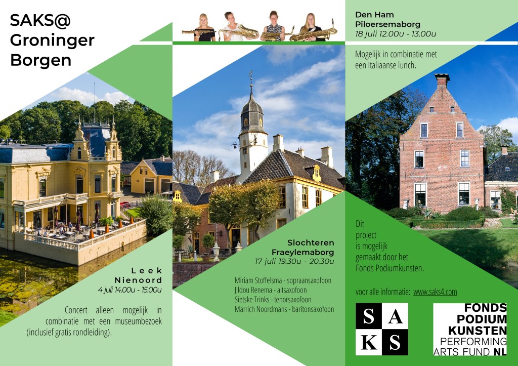 In juni 2021 combineerde saxofoonkwartet SAKS cultureel erfgoed met mooie klassieke concerten. Een project dat we graag willen herhalen bij Fryske Staten en Stinzen.